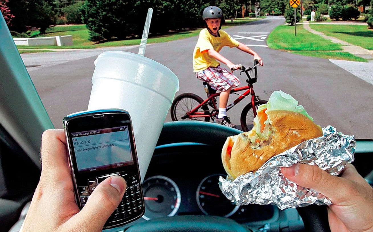 Многие автомобилисты также сочетают вождение с другими видами деятельности, такими как звонки по телефону, обмен сообщениями, еда и питье, курение, а некоторые женщины заходят так далеко, что делают макияж и прически.