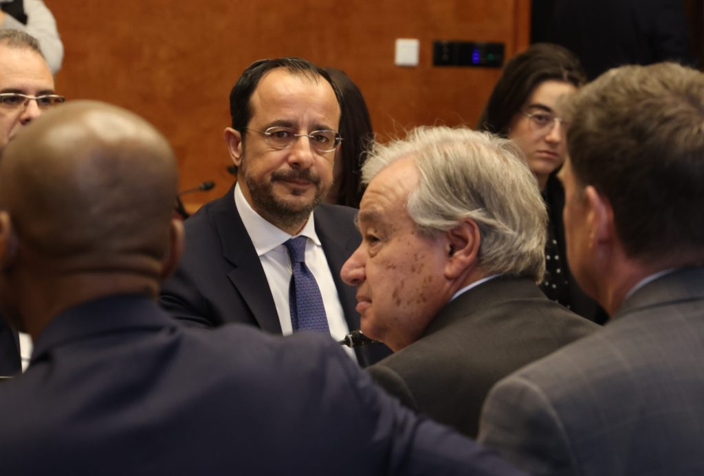 Πρόεδρος της Δημοκρατίας – Άτυπη Διευρυμένη Συνάντηση για το Κυπριακό – Συνάντηση Ολομέλειας Palais de Nations, Γενεύη, Ελβετία Ο Πρόεδρος της Δημοκρατίας κ. Νίκος Χριστοδουλίδης στην άτυπη διευρυμένη συνάντηση για το Κυπριακό, υπό την αιγίδα του Γενικού Γραμματέα του Οργανισμού Ηνωμένων Εθνών κ. António Guterres. // President of the Republic of Cyprus – Informal Meeting on Cyprus in a broader format – Plenary Palais de Nations, Geneva, Switzerland The President of the Republic of Cyprus, Mr Nikos Christodoulides, at the informal meeting on Cyprus in a broader format, under the auspices of the Secretary General of the United Nations, Mr António Guterres.