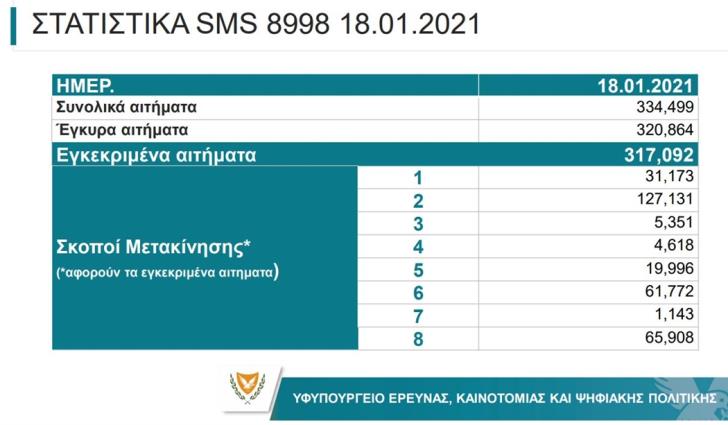 Количество SMS-запросов, отправленных в понедельник 18 января, сократилось по сравнению с воскресеньем, когда оно превысило 400 000.