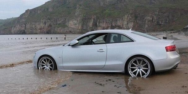 Полиция сообщила, что когда автомобиль был в море в нем находился водитель, но он был спасен прохожими и не пострадал.
