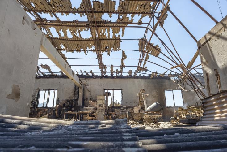 Пепел и разрушения в деревнях района Ларнаки, где в выходные прошел пожар, оставив после себя четыре смерти и разрушения.