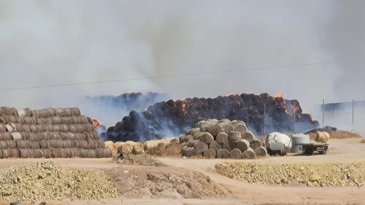 По данным пожарной службы, горит сухая трава и большое количество сена.