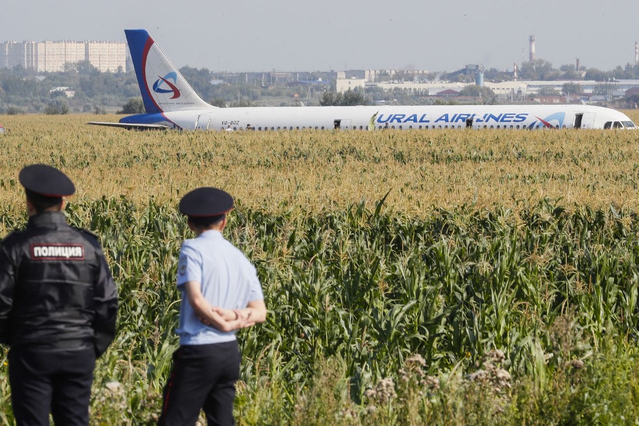 В результате экипаж посадил судно на кукурузном поле около деревни Рыбаки, приблизительно в километре от взлетно-посадочной полосы аэропорта. Самолет приземлялся с убранным шасси. Пассажиров эвакуировали из салона по надувным трапам. Как отметили в Росавиации, пожара на борту А321 не было.