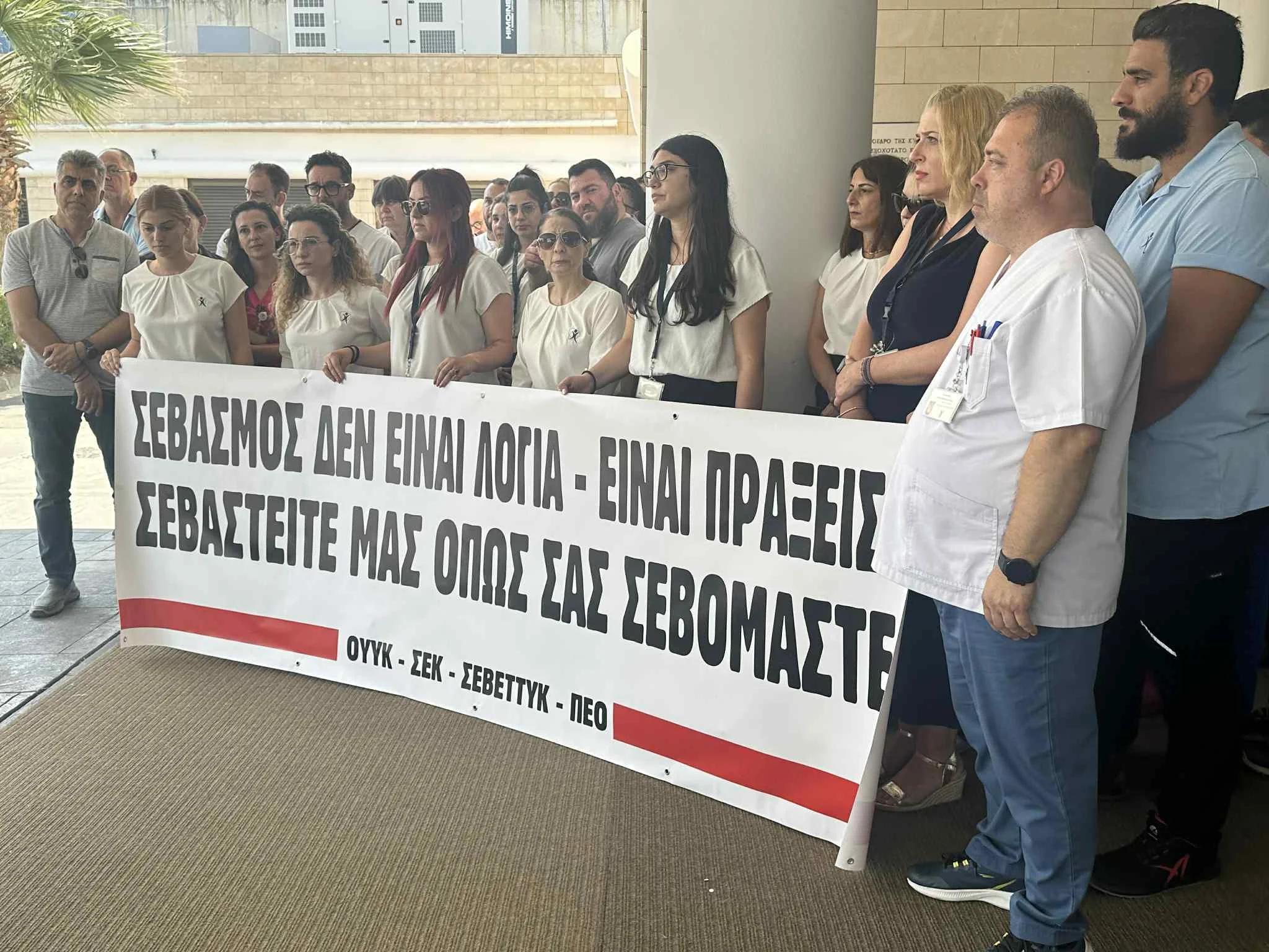 НИКОСИЯ, Кипр – Сотрудники Онкологического центра Bank of Cyprus в пятницу устроили часовую забастовку с 10 до 11 утра, требуя восстановления уволенной коллеги. Профсоюзы SEK и PEO призывают к прозрачности в рассмотрении дела, утверждая, что сотрудница была уволена несправедливо.