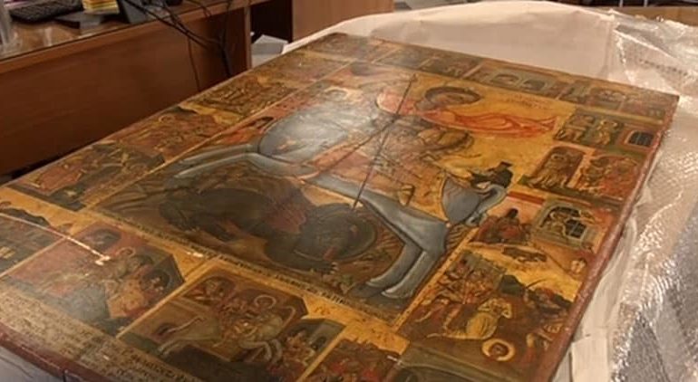Греческая православная икона Святого Георгия 1829 года, украденная из деревни Каравас после турецкого вторжения 1974 года, вернулась на Кипр.