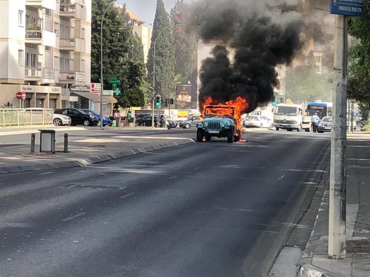 На проспекте Грива Дигени вдоль загорелся автомобиль, в результате чего в этом районе возникли пробки.